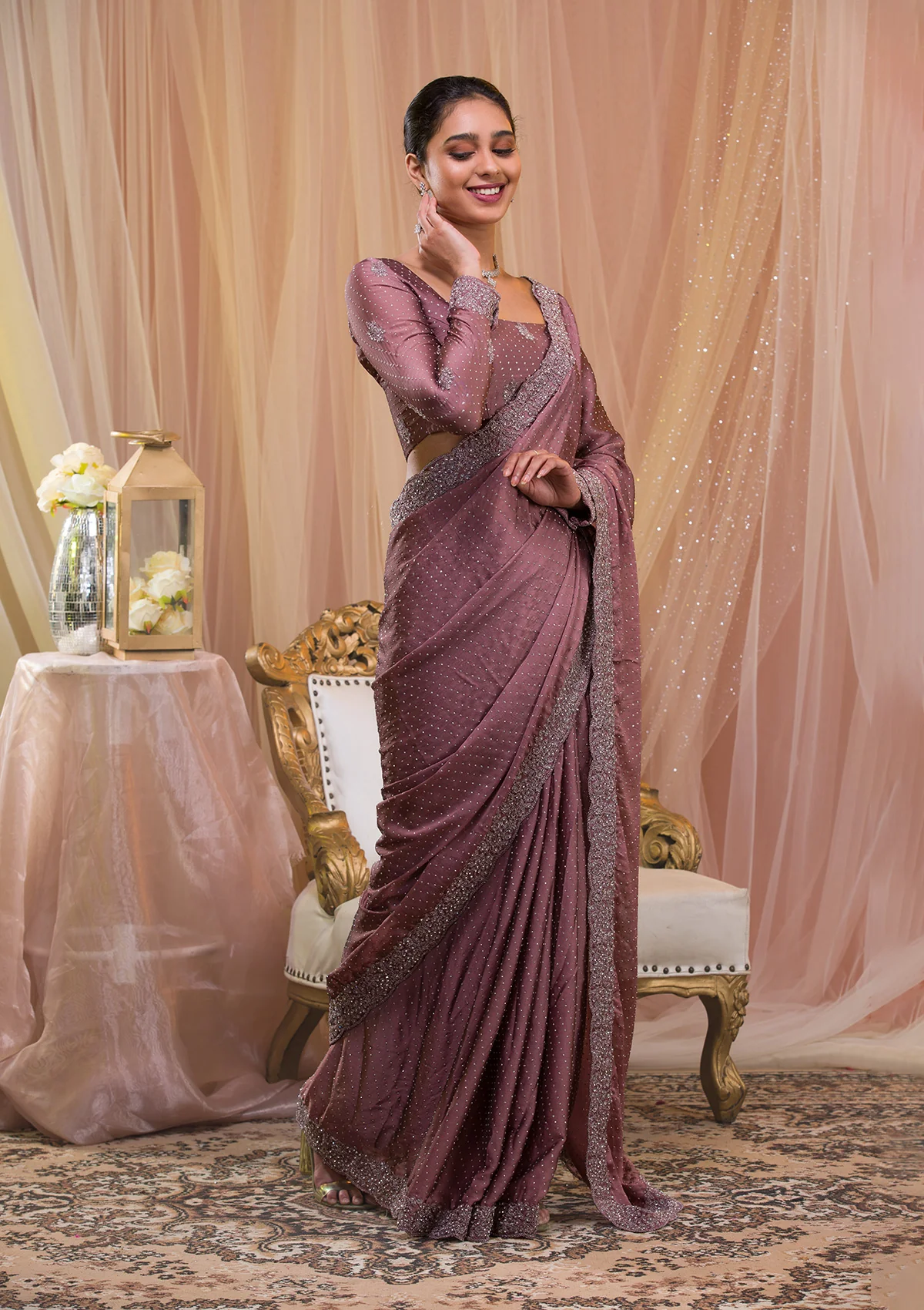 Lavender Stonework Crepe Designer Saree