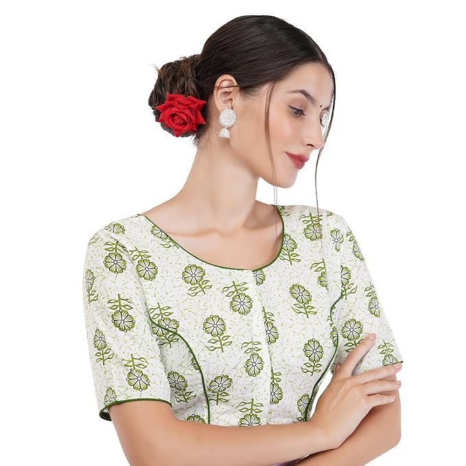 Women’s Kalamkari Printed Pure Cotton Readymade Saree Blouse